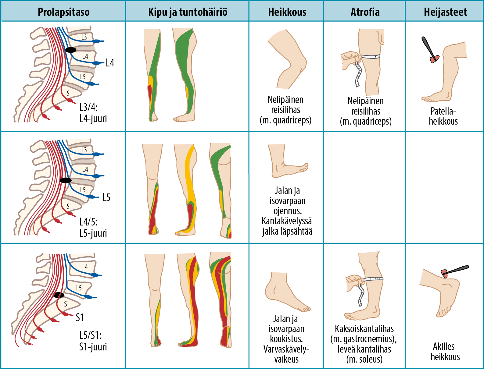 - hermojuuren toimintahäiriö, johon viittaavia oireita ovat alaraajaoireet (iskiasoire, katkokävely)