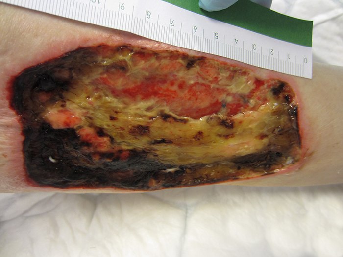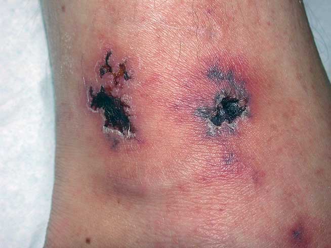 - Singer AJ, Tassiopoulos A, Kirsner RS. Evaluation and Management of Lower-Extremity Ulcers. N Engl J Med 2017;377:1559-1567 «PMID: 29045216»PubMed