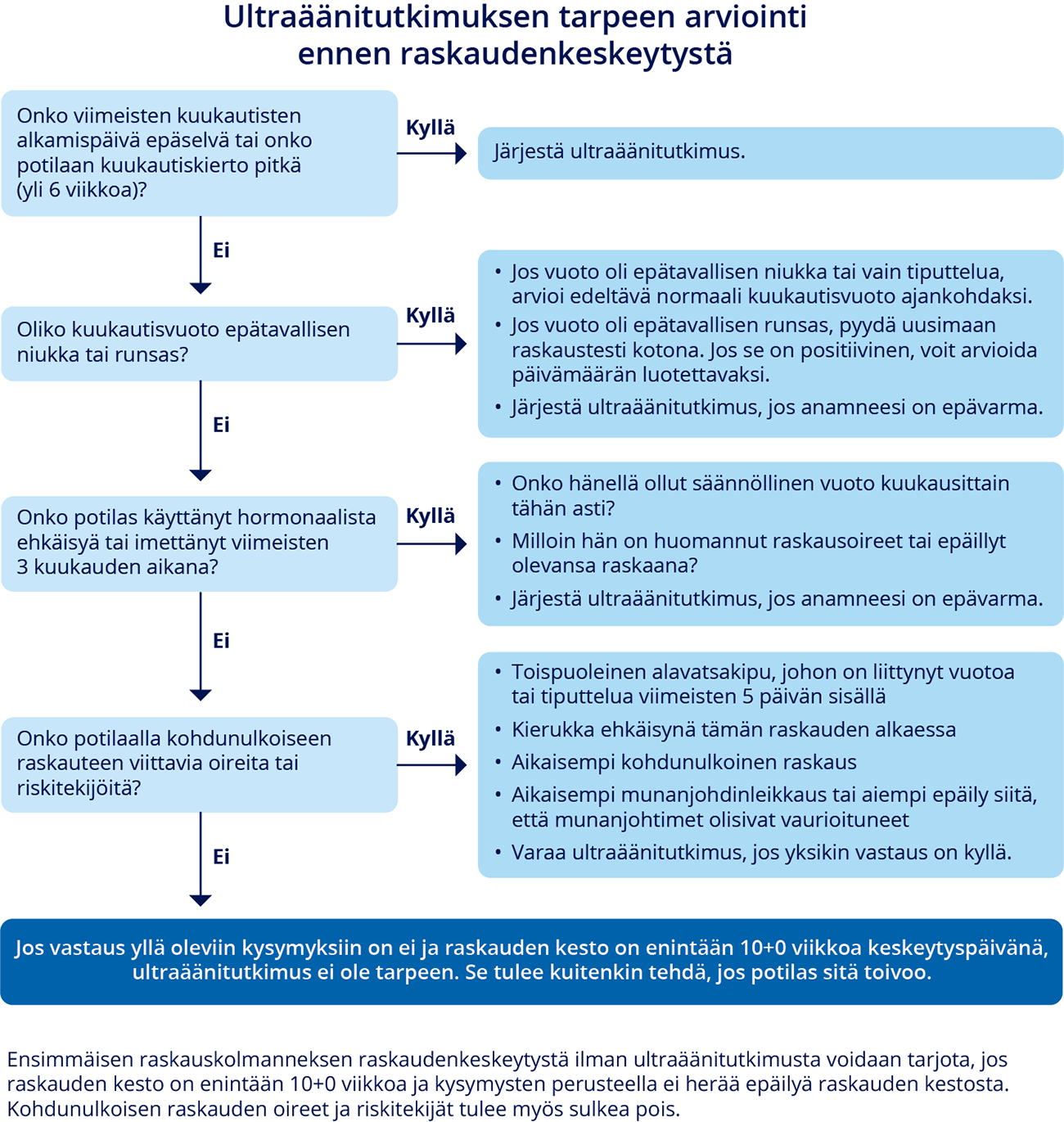 Ultraäänitutkimuksen tarpeen arviointi ennen raskaudenkeskeytystä.