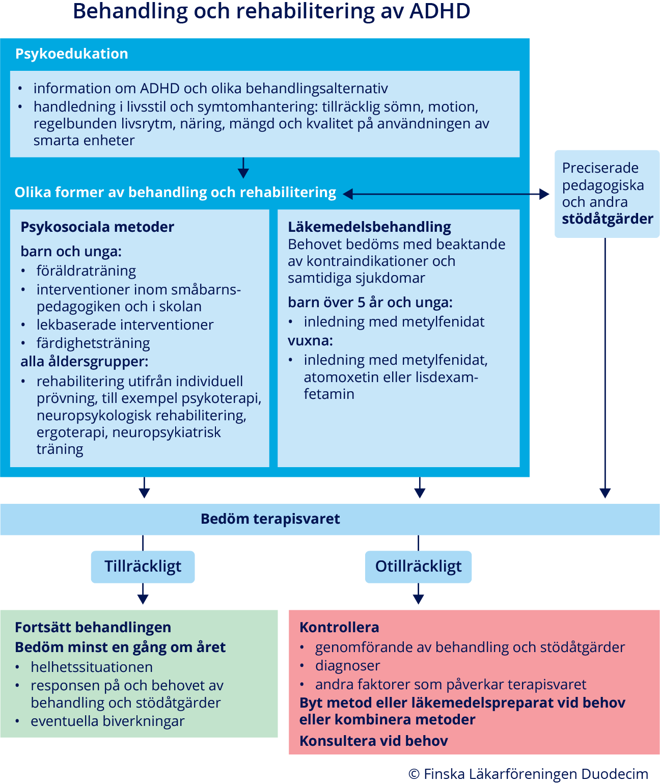 - Behandlingen av samtidiga störningar kombineras med behandlingen av ADHD-symtom.