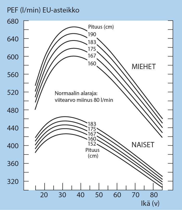 (EN 13826, PEF-mittarin asteikossa sininen teksti keltaisella pohjalla). Ks. myös aikuisten