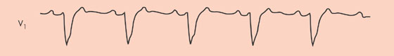Eteistakykardia, joka on klassinen tai eteislepatuksen variantti. Tila liittyy orgaaniseen sydäntautiin ja on harvinainen. Eteistaajuus on 290, kammiovaste 145/min.