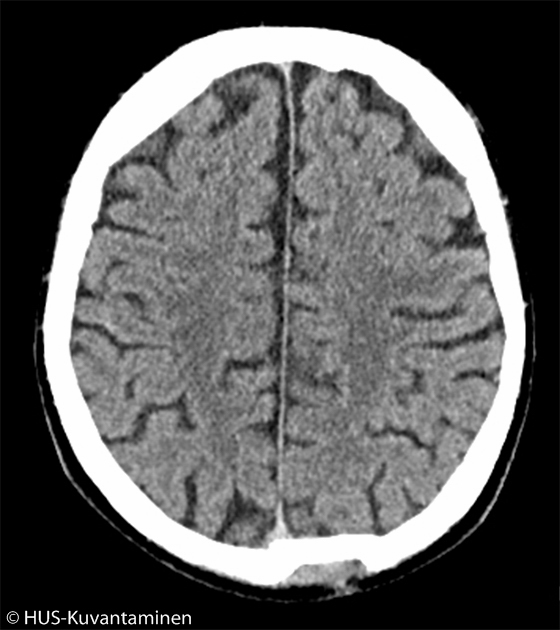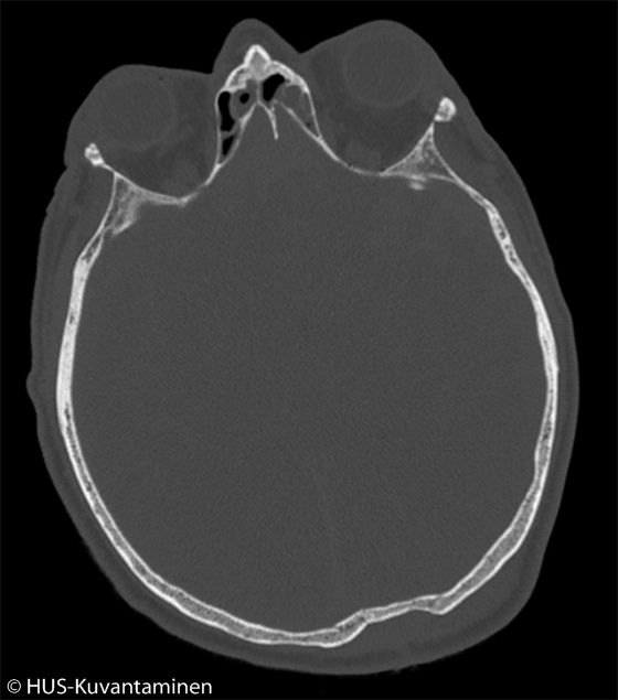 Kallonmurtuma pään TT-kuvassa (kuva 1 ilman löydösmerkintöjä)