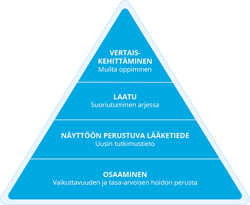 Lisäksi terveydenhuollon vaikuttavuutta voidaan tarkastella arkivaikuttavuuden näkökulmasta. Arkivaikuttavuudella tarkoitetaan osaamisen, näyttöön perustuvan toiminnan, arjessa tapahtuvan toiminnan ja toiminnan kehittämisen kokonaisuutta (kuva « Arkivaikuttavuuden neljä tasoa (muokattu lähteestä: Malmivaara A»3) «Valtakunnallisen lääkinnälliseen kuntoutukseen ohj...»9.