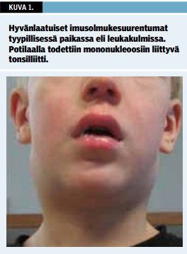 Ruotsalaisessa koululaisaineistossa kolmanneksella perusterveistä lapsista havaittiin suurentuneita imusolmukkeita kaulalla, niskan ja takaraivon alueella tai korvien takana (1). Imusolmuke tulkitaan suurentuneeksi, jos sen läpimitta on yli 1 cm. Akuutista imusolmukkeiden suurenemisesta voidaan puhua, kun tila on kestänyt alle 2 viikkoa, subakuutin kesto on 2-6 viikkoa ja kroonisen yli 6 viikkoa (2).