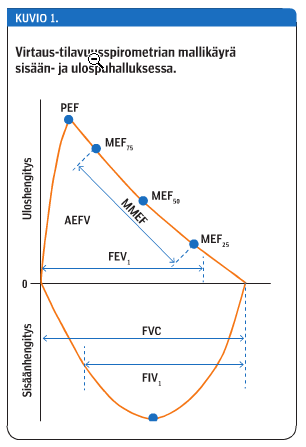 MEF25 = uloshengitysvirtaus viimeisen tilavuusneljänneksen kohdalla fvc:stä