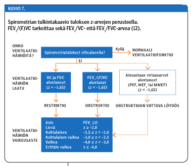 Kuviossa 7 «»8 on esitetty suositeltava spirometrian tulkintakaavio z-arvoja käyttäen.