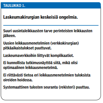 Laskeumakirurgian tulosten seuraamiseksi olisi tärkeää perustaa valtakunnallinen rekisteri muiden Pohjoismaiden tapaan.