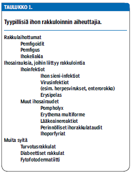 Rakkulat iholla ovat oire, jonka taustasyyt vaihtelevat arkipäiväisestä ihon hankautumisesta hyvin harvinaisiinkin ihosairauksiin. Usein jo potilaan ikä, rakkuloiden määrä, ulkonäkö ja sijainti sekä muut iholla mahdollisesti näkyvät oireet kertovat rakkulanmuodostuksen todennäköisen syyn. Erotusdiagnostisesti epäselvissä tilanteissa ihokoepala (tuore, kokonainen ja ehjä rakkula) ja erikoissairaanhoidossa tehtävät spesifiset tutkimukset voivat olla tarpeen.