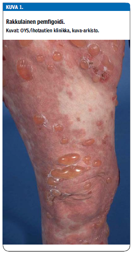 Tautiin kuuluu lähes poikkeuksetta voimakas kutina, joka voi ilmaantua useita kuukausia ennen rakkuloita. Huomionarvoista on, että joka viidennellä pemfigoidipotilaalla ei ole rakkuloita, vaan oireena ovat ihon kutina ja osin raapimisesta aiheutuvat epäspesifiset muutokset (1,2). Pemfigoidin ilmaantuvuus on suurentunut useissa maissa, myös Suomessa (3-5).
