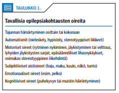 Haastavaksi epileptisten oireiden tunnistamisesta tekee epilepsiakohtausten ja epilepsioiden monimuotoisuus ja se, että lapsilla esiintyy myös runsaasti ei-epileptisiä kohtausoireita, joita ovat esimerkiksi tic-tyyppiset nykimisoireet, maneerit, pyörtyminen ja toiminnalliset oireet. Imeväisikäisten lasten ei-epileptisiä kohtausoireita ja diagnostiikkaa kuvataan tuoreessa Lääkärilehden artikkelissa (14).