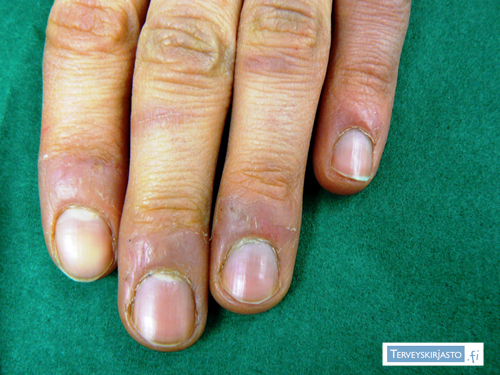 | Kynsinauhojen hiusverisuonten laajentuminen (kuva «»11) ja verenvuodot (kuva «»8) |