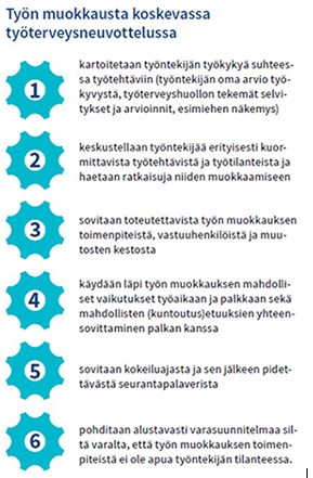 - Useimmin työn muokkauksesta keskustellaan työterveysneuvottelun yhteydessä.